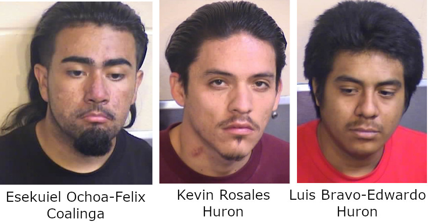 Homicide detectives with the Fresno County Sheriff’s Office have arrested three men for shooting and injuring a man in San Joaquin. 20 year old Kevin Rosales of Huron, 19 year old Luis Bravo-Edwardo of Huron and 19 year old Esekuiel Ochoa-Felix of Coalinga have been booked into the Fresno County Jail. All three face charges of attempted murder and participating in a criminal street gang. Rosales also faces a charge of carrying a loaded weapon and probation violation. Rosales’ bail is set at $90,000, Bravo-Edwardo’s is $80,000 and Ochoa-Felix’s is $80,000.