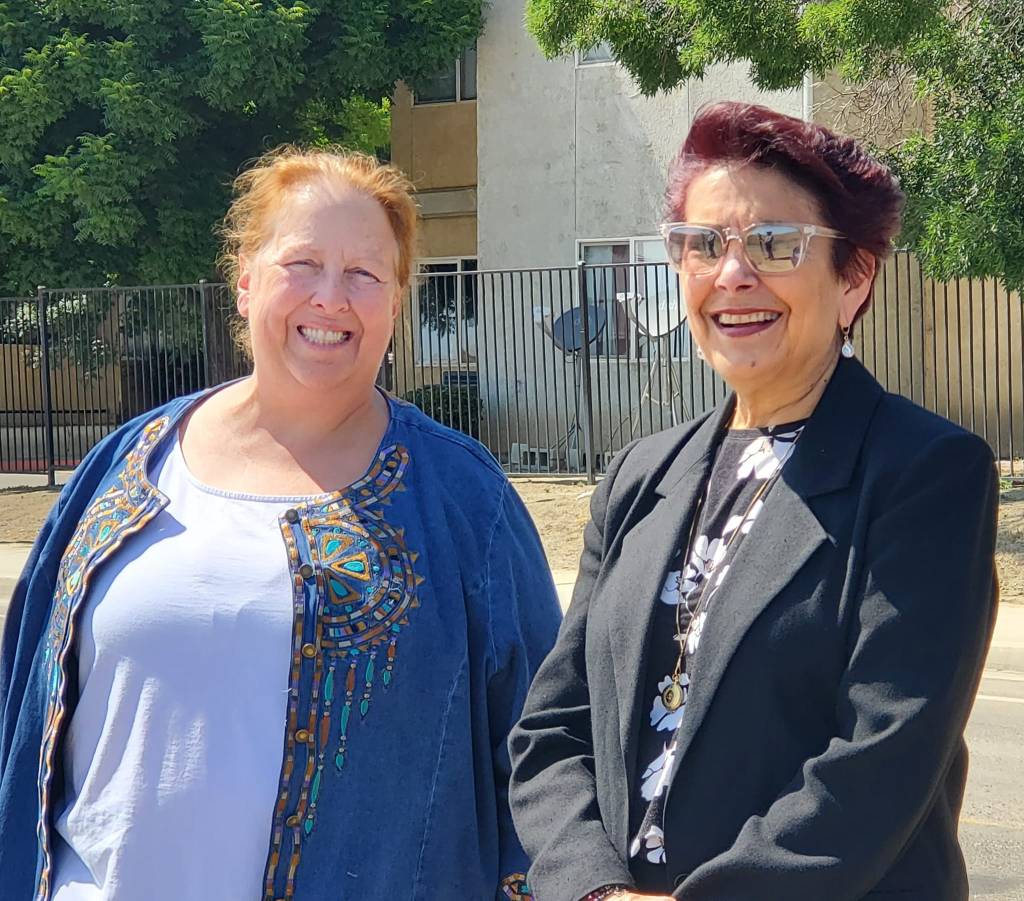 CHUSD Superintendent Lori Villanueva and Senator Ana Caballero Look toward donated land site on the edge of Huron.